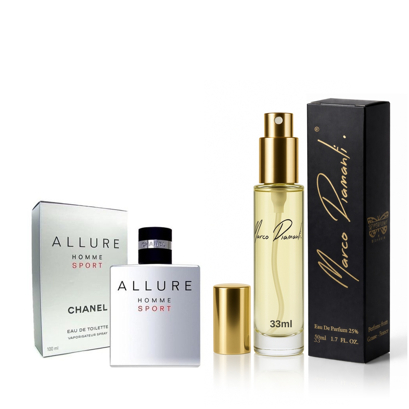 Zapach inspirowany Chanel Allure Homme Sport, nie jest jednak jej produktem ani oryginałem. To niezależna kompozycja zapachowa oparta na wysokiej jakości półproduktach, mieszanych przez nas, w Polsce.