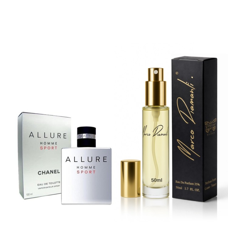 Zapach inspirowany Chanel Allure Homme Sport, nie jest jednak jej produktem ani oryginałem. To niezależna kompozycja zapachowa oparta na wysokiej jakości półproduktach, mieszanych przez nas, w Polsce.