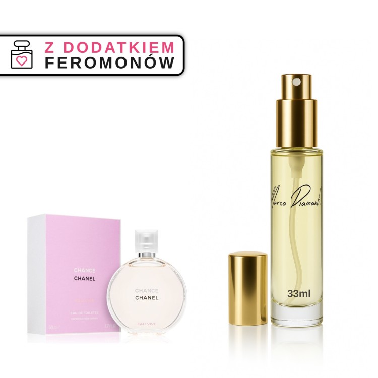 Zapach inspirowany Chanel Chance Eau Vive, nie jest jednak jej produktem ani oryginałem. To niezależna kompozycja zapachowa oparta na wysokiej jakości półproduktach, mieszanych przez nas, w Polsce.
