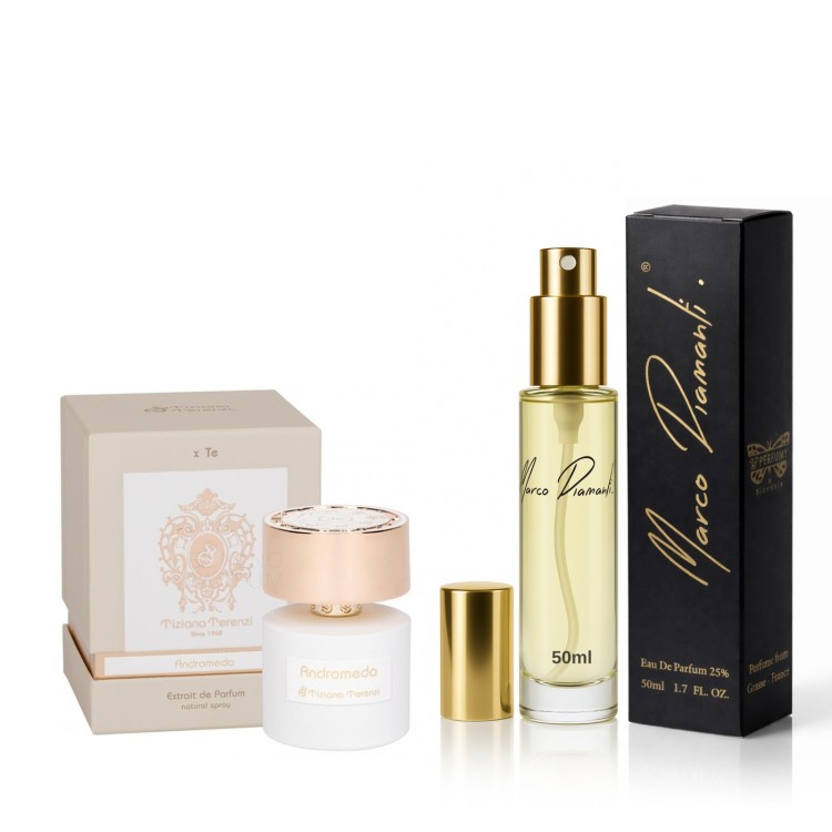 Zapach inspirowany Tiziana Terenzi Andromeda, nie jest jednak jej produktem ani oryginałem. To niezależna kompozycja zapachowa oparta na wysokiej jakości półproduktach, mieszanych przez nas, w Polsce.