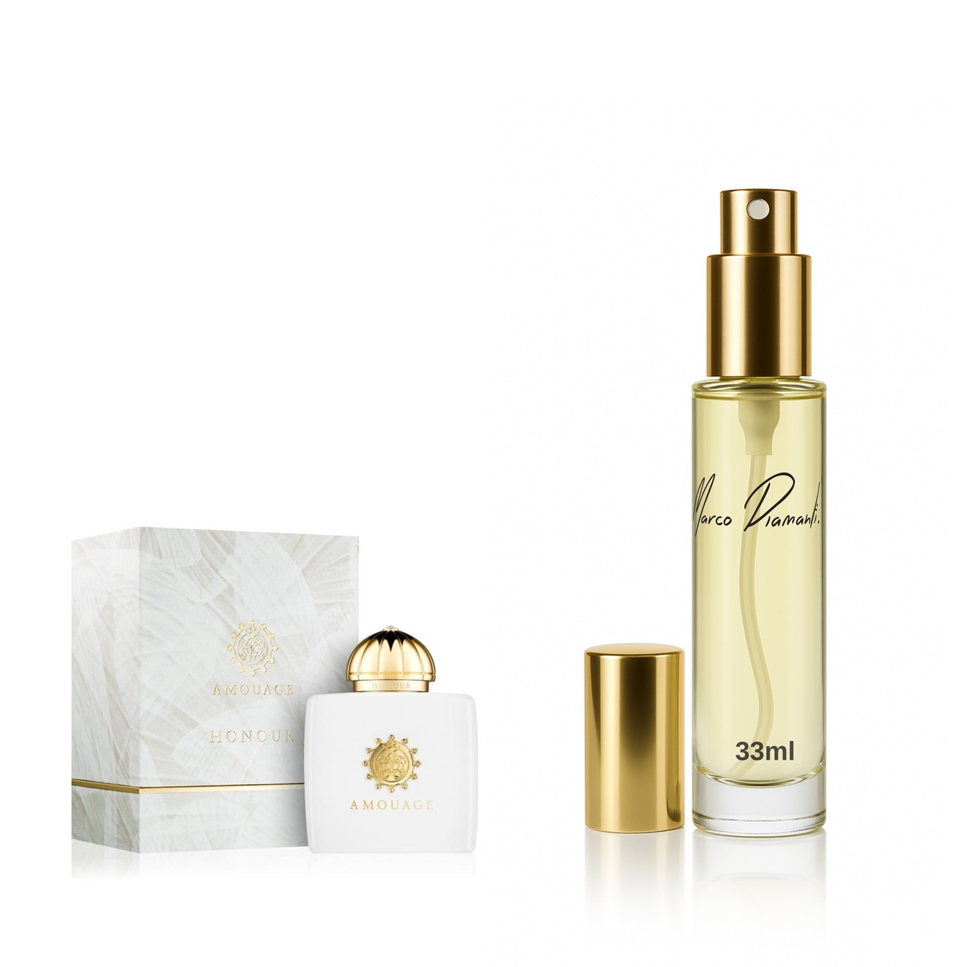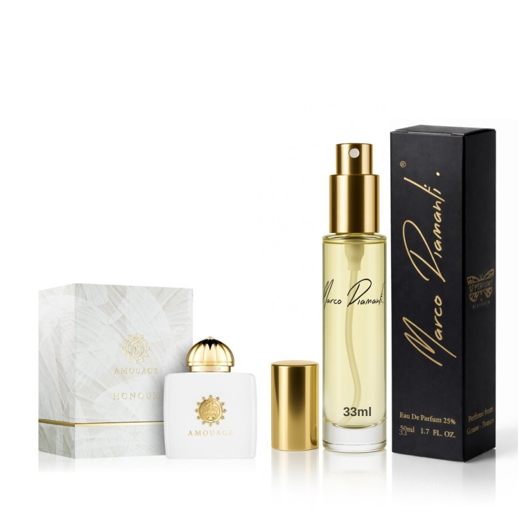 Zapach inspirowany Amouage Honour Woman, nie jest jednak jej produktem ani oryginałem. To niezależna kompozycja zapachowa oparta na wysokiej jakości półproduktach, mieszanych przez nas, w Polsce.